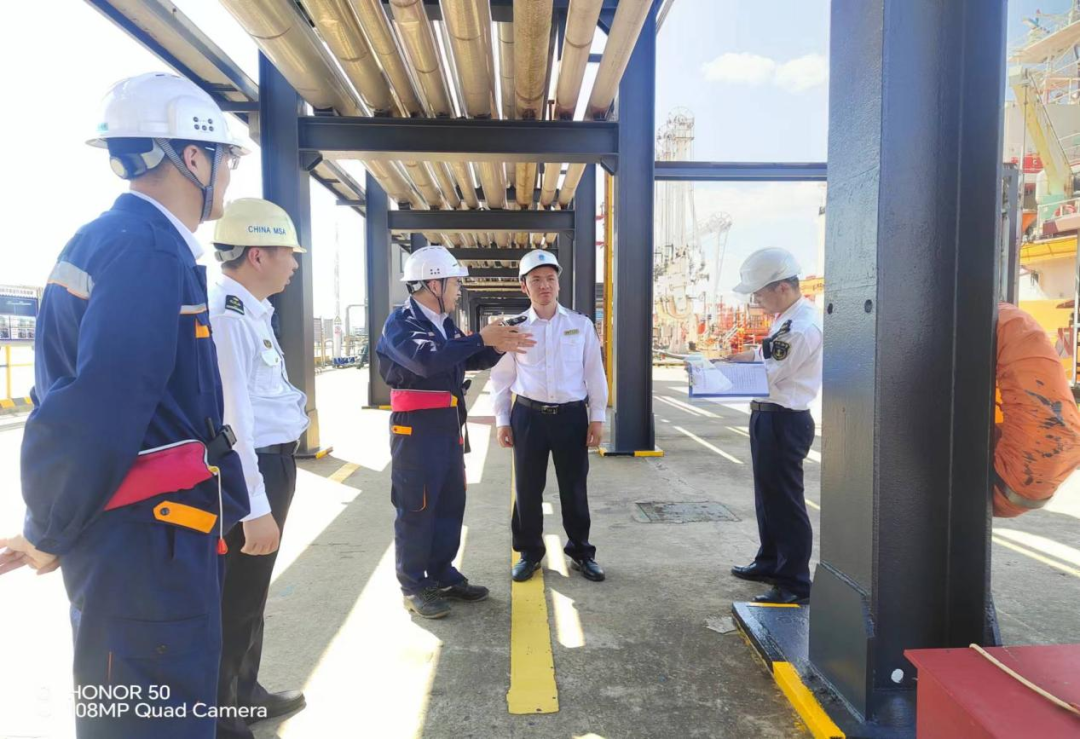 5月7日,江陰海事處領導親臨麗天碼頭,對船舶作業情況進行了詳細的檢查。在聽取相關工作匯報后,領導們對我公司的船舶基礎臺賬進行了嚴格的審查,并對我公司船舶監管工作的成效給予了充分的肯定。同時,領導們特別強調,船舶安全工作不容有絲毫松懈,務必加強重點時段的現場監督,認真排查并消除潛在的安全隱患,確保碼頭水上船舶作業的安全穩定。
